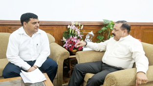 Union Minister, Dr Jitendra Singh with MLA Bhaderwah, Dilip Singh Parihar, who called on him to thank him for getting the Central Government approval of Chhatergala tunnel, at New Delhi on Wednesday.