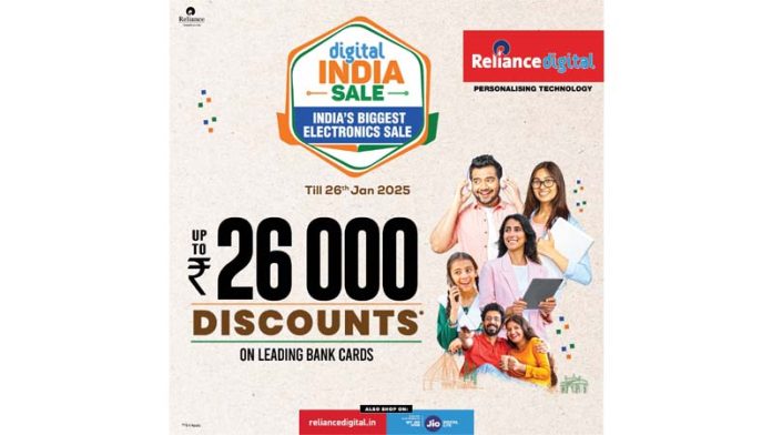JAMMU, Jan 23: Reliance Digital, India’s leading electronics retailer, today announced the return of its highly anticipated Digital India Sale, promising to be the country’s largest electronics shopping extravaganza.