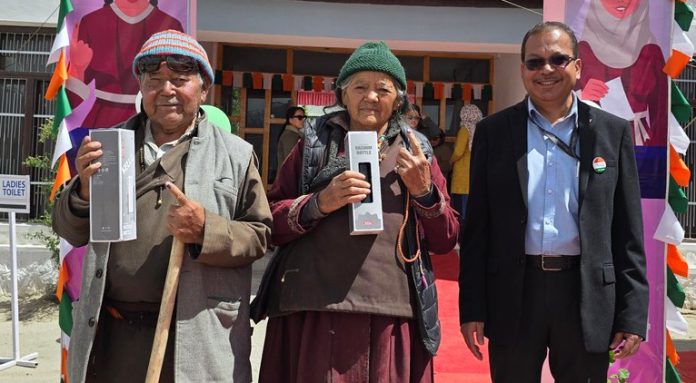 Ladakh Lt Governor Brig (Dr) BD Mishra (retd) and his wife Neelam Mishra cast their votes at Skara Yokma in Leh.
