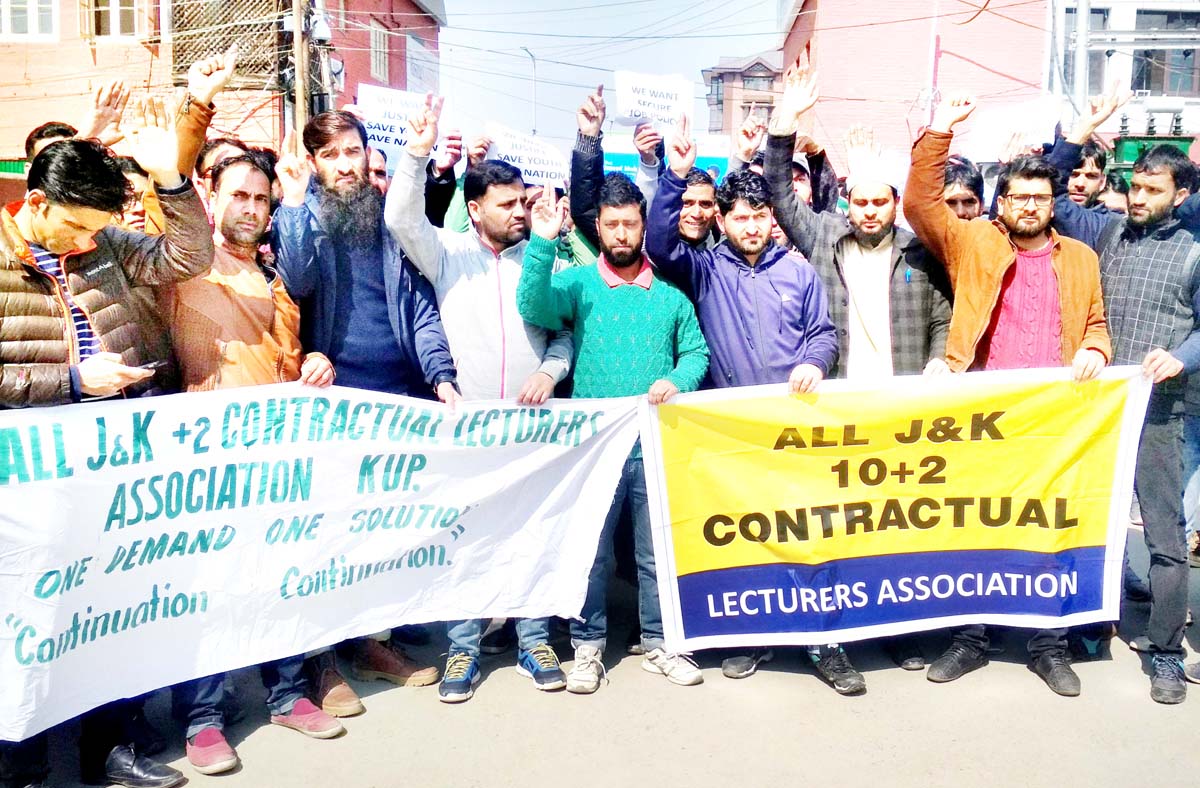 Srinagar, Mar 2: 10+2 contractual lecturers today demanded that a secure job policy must be formulated by the Government in order to save their career even after working in the Higher Education Department for years now.