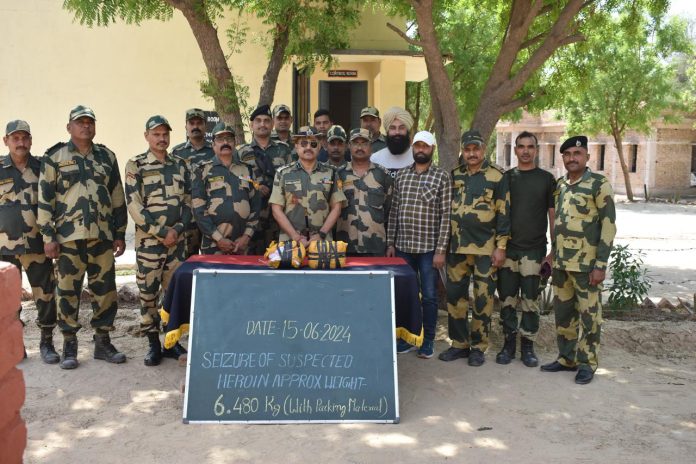 During a joint search, BSF jawans and police personnel found two packets of heroin weighing 6 kg. The value of the consignment is estimated to be Rs 30 crore, they added.