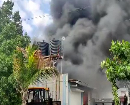 Eight fire tenders were rushed to the spot after the blaze was reported at 3:30 pm.
