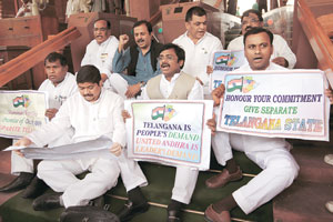 The two MPs Y S Chaudhary and C M Ramesh, were in the Well and chanting slogans against the decision to form Telangana.