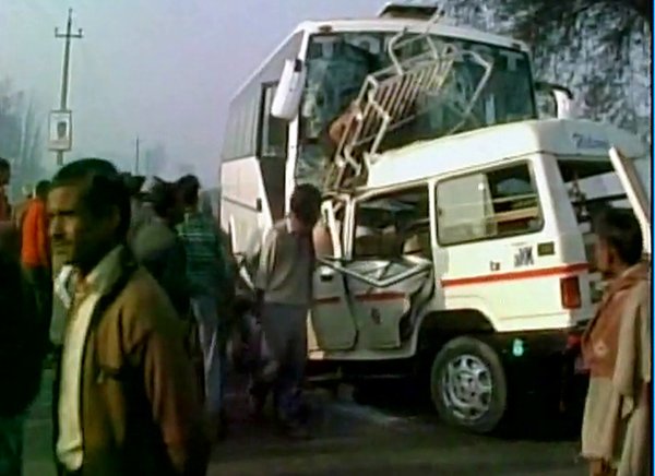 The pilgrims were returning from Devi Patan temple in Tulsipur when their jeep hit a bus carrying foreign tourists at Belha turn killing 10 persons on the spot, SP Umesh Chandra Srivastava said.