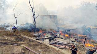 A senior police officer said that that fire engulfed Haril village this morning in which 12 structures were completed gutted while thousands of apple boxes were also destroyed in the inferno. He said after several hours of firefighting, the blaze was brought under control.