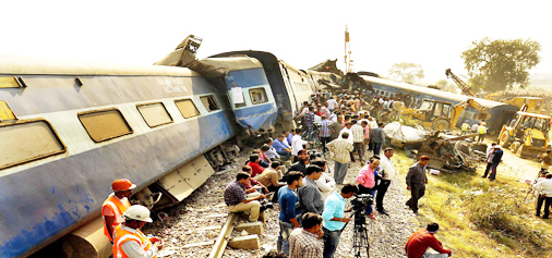PUKHRAYAN (UP), Nov 20: At least 120 passengers were killed and more than 200 injured, nearly half of them grievously, in the worst train accident in recent years when 14 coaches of Indore-Patna Express derailed here in Kanpur rural area in the wee hours today due to suspected rail fracture.