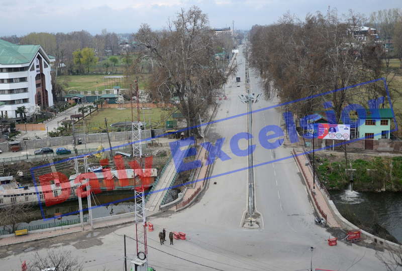 Empty streets of Srinagar on Sunday. — Excelsior/Shakeel