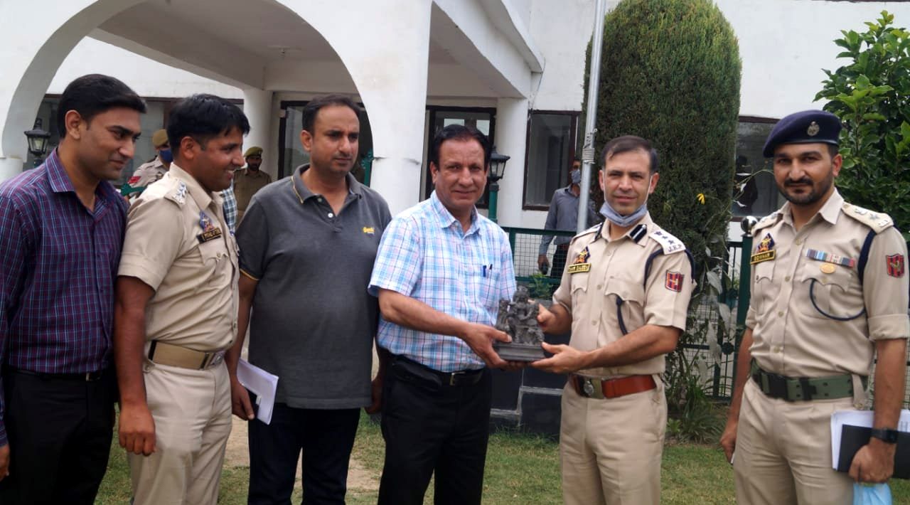 SRINAGAR, Aug 31: The Jammu and Kashmir Police recovered approx 1200-year-old sculpture of Goddess Durga from the Khan Sahib area of Budgam district on Tuesday. According to the Police, the sculpture was handed over to Mushtaq Ahmad Beigh, Deputy Director, Department of Archives, Archaeology and Museums, and his team by Tahir Saleem Khan, Senior Superintendent of Police (SSP) Budgam.