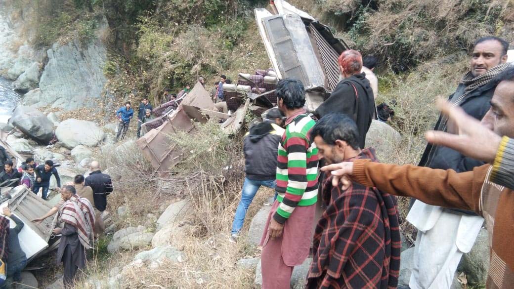 The accident occurred at Plera in Mandi area when the driver of the bus, coming from Loran to Poonch, lost control over the vehicle while negotiating a curve and rolled down into a 100-meter gorge, a police official said.