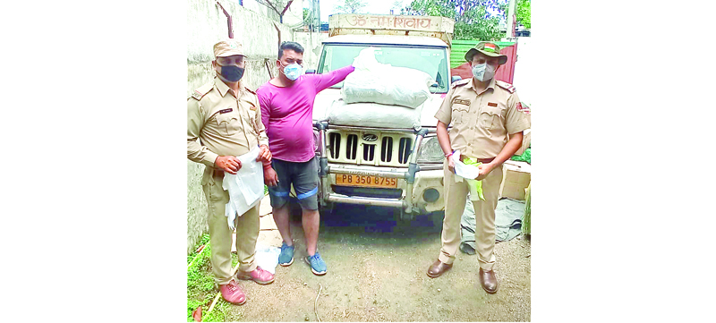 The forest officials on duty at the Check Post stopped a Mahindra pick up bearing Registration Number PB35Q/8755 coming from Pathankot, towards Jammu.