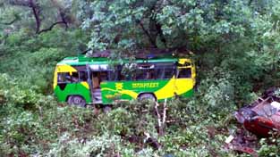 According to a police spokesperson, the mishap occurred at about 6 am when a bus bearing registration number JK02BJ-7187 which was on its way from Jammu to Doda hit one Alto car bearing registration number JK02X-2453 coming from opposite side. On collision of both the vehicles their drivers lost control over them and they (vehicles) rolled down into a deep gorge along the road.