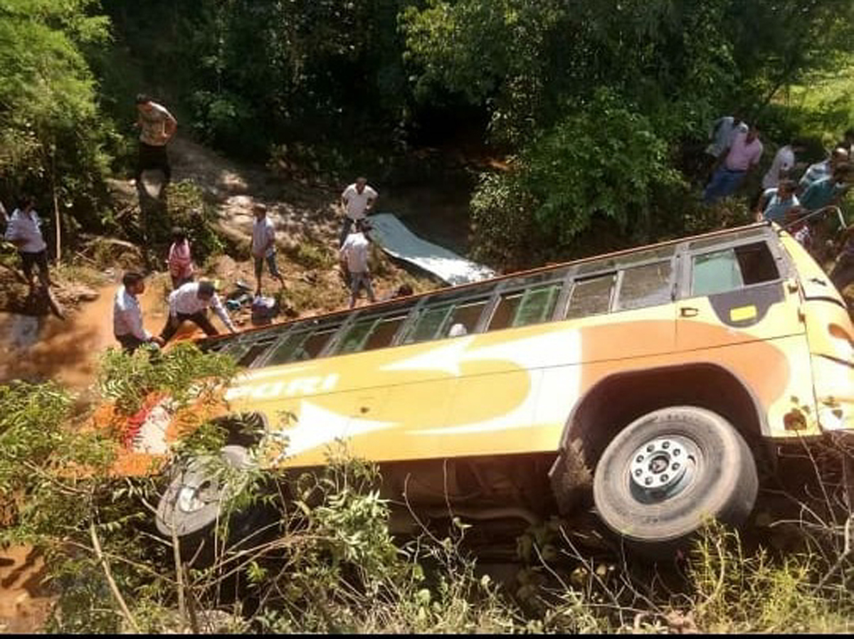Official sources said that mishap took place at around 1.50 pm near Pir Baba at Lamberi. The bus bearing registration No. JK02AK/3047 was on way to Rajouri from Jammu while the tipper No. JK-11/ 4957 was moving in opposite direction. The bus after collision went out of control and fell into a gorge while the tipper fell on the road side.