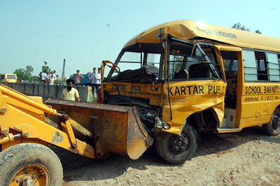KATHUA, May 11: Seventeen students and three staff members of Kartar Public School Barnoti near here were injured when a school mini bus carrying them to home from school met with an accident near to the school. The incident took place at around 3.00 PM today when the school bus bearing registration number JK08B 6269 carrying students and school staff was on way from Barnoti to Kathua.