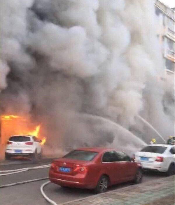 Pictures on microblog Sina Weibo showed a building engulfed by heavy smoke and people jumping out of windows, while firefighters were trying to tame the blaze.