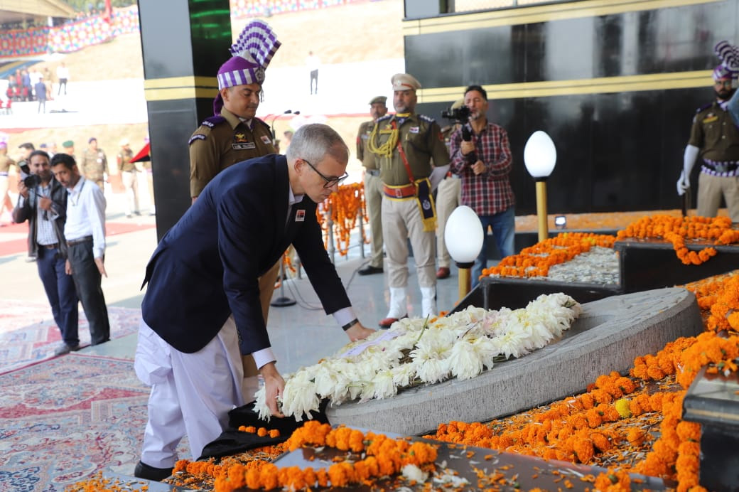 SRINAGAR, Oct 21: Chief Minister Omar Abdullah today paid homage to police martyrs on Police Commemoration Day during a solemn ceremony at the Police Martyrs Memorial here at Zewan.