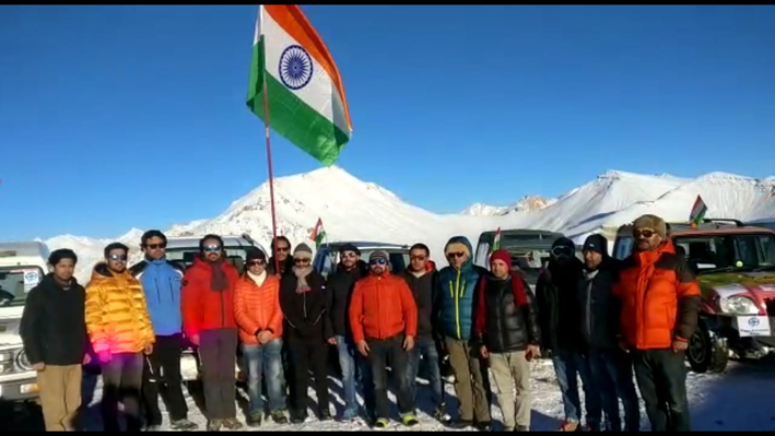 The participants of the rally hoisted the Nation Flag at Hambutingla Pass-13800 ft, brazing minus 25 degrees.