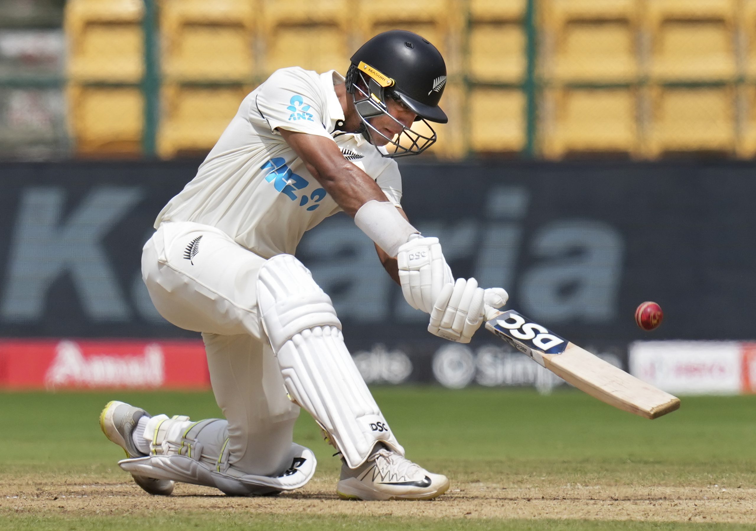 Ravindra followed soon top-edging Kuldeep Yadav (3/99) to Dhruv Jurel as the Kiwis’ innings came to a close.
