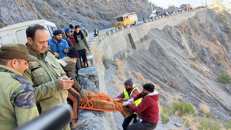 The ropes and human chain were created to pull out the bodies from the gorge which were then shifted to District Hospital Ramban for identification.