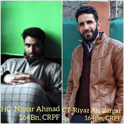 In the said incident two CRPF Jawans lost their lives and were identified as HC Nisar Wani, resident of Verinag and constable Riyaz resident of Kokernag.
