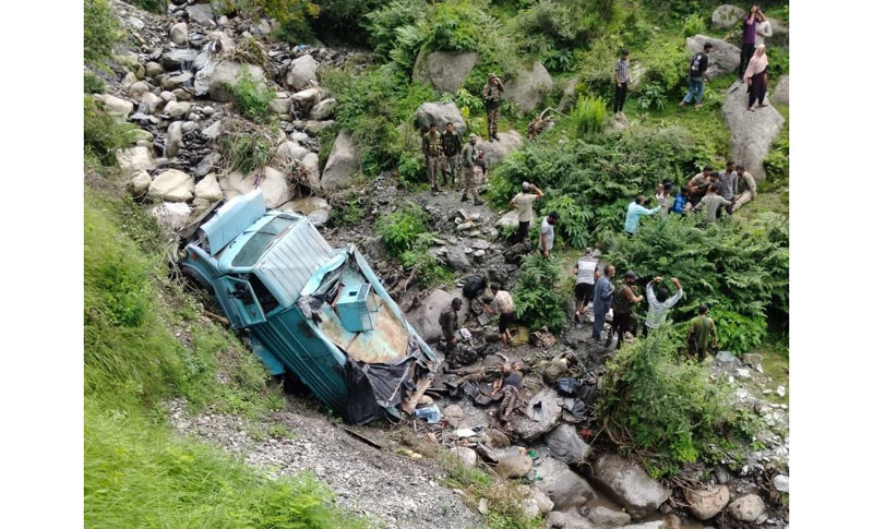 UDHAMPUR, Aug 7: Two CRPF personnel were killed and 16 others sustained injuries when the vehicle, they were travelling in, plunged into a deep gorge in Basantgarh area, here this morning.
