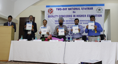 “Those who have performed excellent should be rewarded suitably while the poor performers should be served the memo, asking them to improve or suffer,” Prof. A. S. Brar said while delivering the presidential address during the inaugural day of the two day seminar on “Quality Concerns in Higher Education,” organised by the Internal Quality Assurance Cell (IQAC) and School of Education, of the Central University of Kashmir (CUK), in collaboration with National Assessment and Accreditation Council (NAAC) Bangalore at Nowgam academic block.