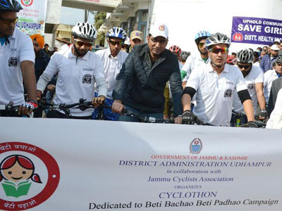 180 kilometres of Cycling Expedition by 22 members of Jammu Cycling Club and a district level conference on Girl Child concluded today. Entire Udhampur town was decorated and thousands of girls, especially students, and their parents and teachers organized street plays, cultural programmes where the cycling groups halted to a rousing reception.