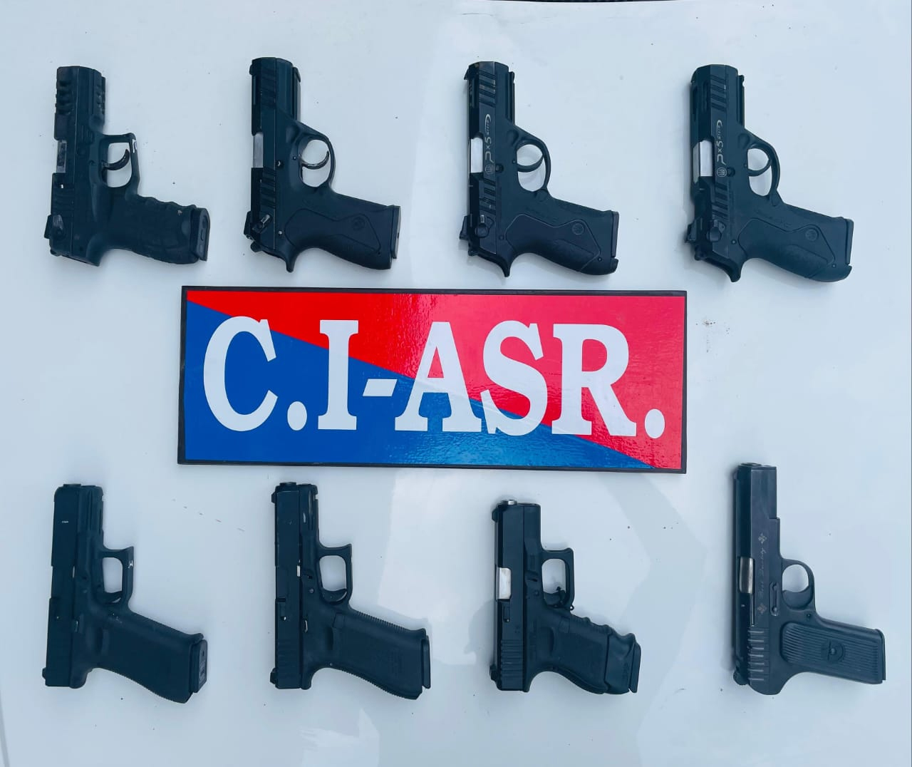 Three Glock 9mm pistols, four Px5 pistols and a .30 bore pistol were recovered from them.