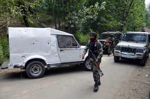 Security forces this morning cordoned off Tahab village in South Kashmir’s Pulwama district after inputs that two militants are hiding in the village. As the security forces laid siege to the village, the militants hiding tried to flee and fired at the security forces, triggering a brief gunfight in which two militants were killed.