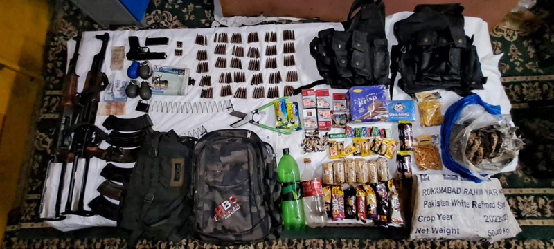 In Machil, two AK series rifles, six AK magazines, 151 rounds of ammunition, one pistol, four grenades, two pouches, one fence cutter and two back packs were recovered from the encounter site. Click here to watch video