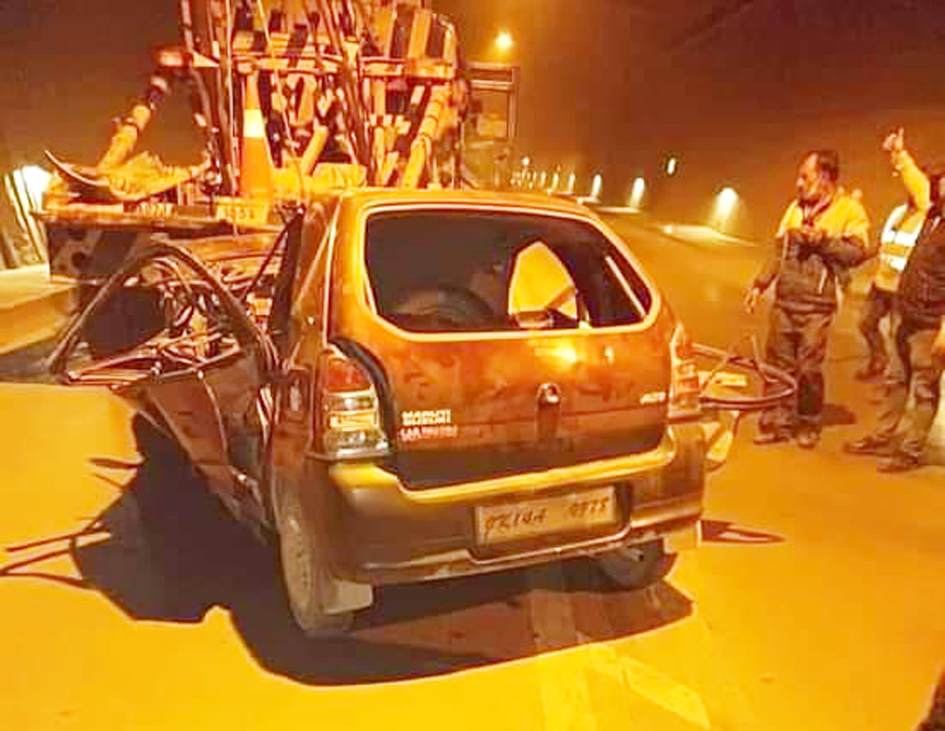 The ill-fated vehicle bearing registration number JK14A-9978 was on its way to Ramban from Udhampur when the driver lost control over the vehicle and it collided with gate number 16 inside Chenani-Nashri tunnel along Jammu-Srinagar National Highway late last night, resulting into on the spot death of two persons and serious injuries to another.