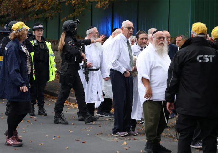 LONDON, Oct 2 : Two people have been killed and a suspect has been shot dead by police officers in a stabbing and car attack declared a “terrorist incident” at a synagogue in Manchester on the Jewish holy day of Yom Kippur on Thursday.