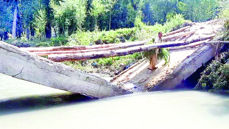 Baramulla, July 21: Two months have passed by but the villagers of Dungdara, Kreeri in district Baramulla are still waiting for the Rural Development Department (RDD) to repair a collapsed cross-over bridge that connects the village to its other side.
