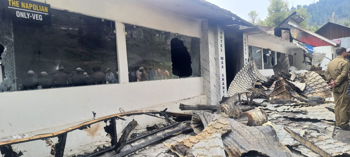 Fire occured in Hotel Maa Shanti in Sanasar tourist place and spread fast engulfing the entire area, they said.