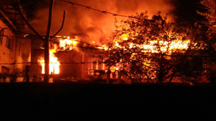Two houses belonging to Jagdish Kumar and late Pir Singh were totally gutted in fire, while the houses of Pralad Bhagat, Ghansham Singh Shan and Satish Kumar were partially damaged.