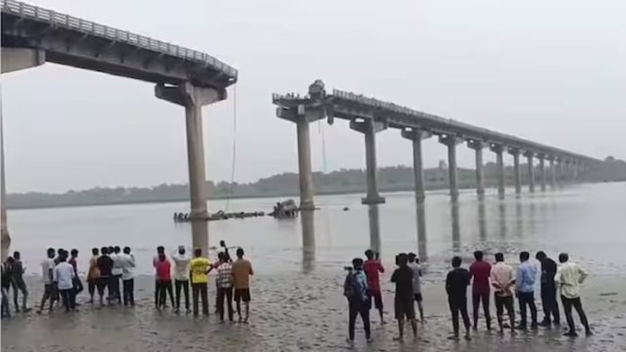 Visuals showed the entire slab of the bridge between two piers having collapsed. The slab collapse caused the vehicles, which were passing through it, to plunge into the river.