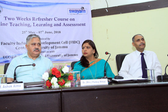 Prof Ashok Aima, Vice Chancellor Central University of Jammu in his presidential address called upon the participants of the refresher course to exhibit their commitment and professionalism while also accepting the challenges of online education. He appreciated the role of UGC SWAYAM Cell of the University for planning and organizing the refresher course on SWAYAM MOOCs Programme which will address the upcoming challenges of the new era of e-learning which is based on access, equity and excellence.