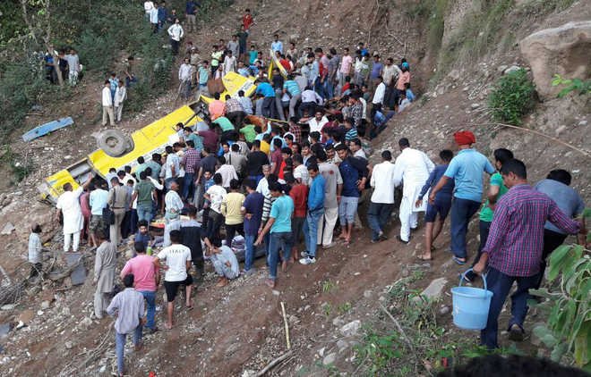 SHIMLA/NURPUR: Twenty seven children were among 30 killed when a school bus ferrying them back home plunged into a deep gorge near village Gurchal on the Nurpur-Chamba highway, about 100 km from the district headquarters at Dharamsala.