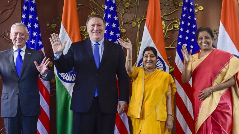 2+2 talks: India, US ink critical defence pact; discuss cross-border terror, H1B
