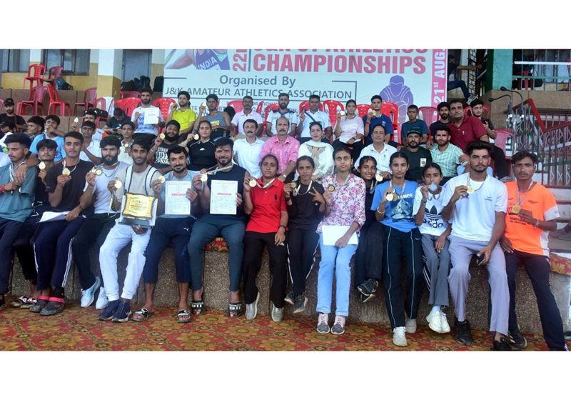 JAMMU, Aug 21: The 22nd J&K UT Athletics Championship-2024 culminated with a vibrant closing ceremony and prize distribution event held at the Synthetic Athletics Track, Jammu University. Organized by the J&K Amateur Athletics Association under the auspices of the Athletics Federation of India, the championship was conducted in collaboration with Jammu University, the Department of Youth Services and Sports, and sponsored by the J&K Sports Council.