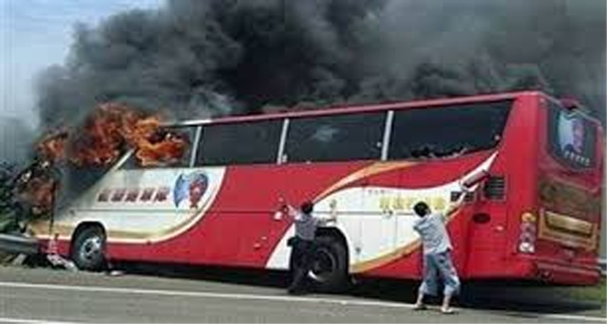 The accident occurred around on Friday evening when the 59-seater bus from neighbouring Henan province suddenly caught fire on a highway in Hanshou County in the city of Changde.