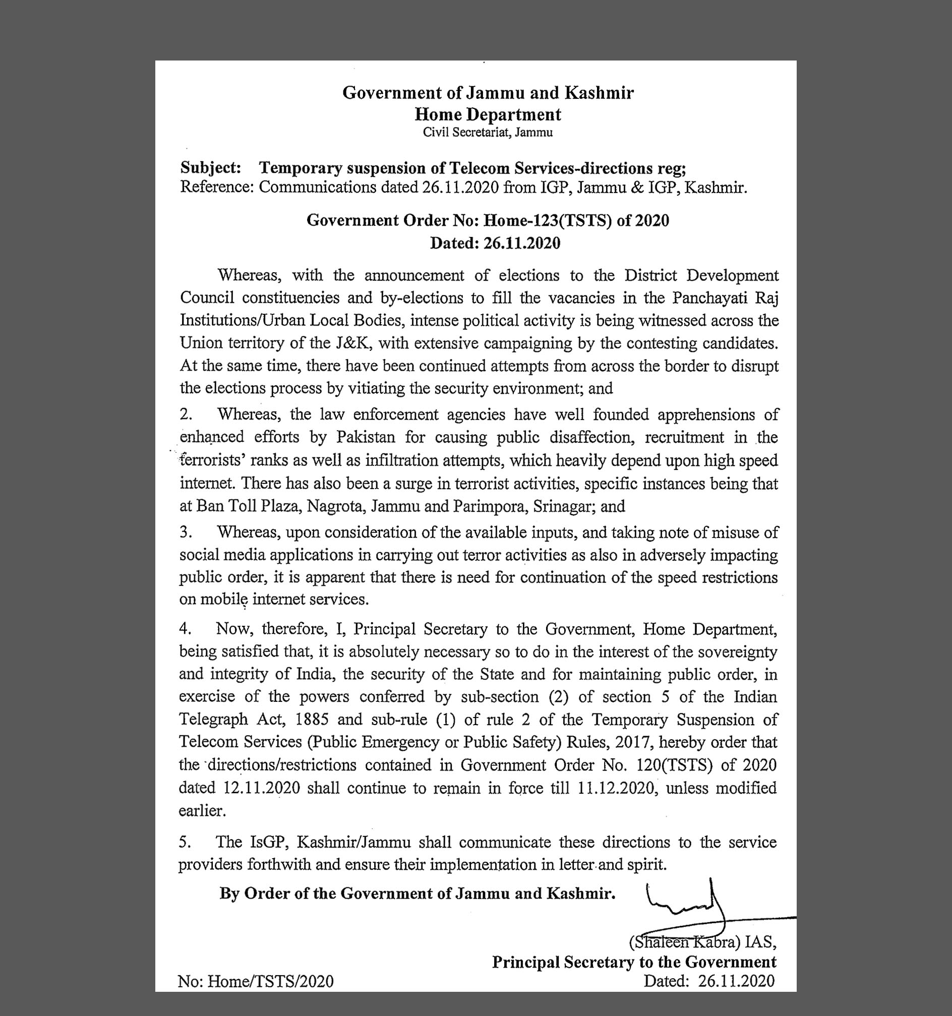 2G mobile internet services extended By Daily Excelsior - November 26, 2020 Share FacebookTwitterWhatsAppPinterestLinkedinCopy URLTelegramEmailTumblrReddItPrintKoo JAMMU: 2G mobile internet services extended in the Union Territory Jammu and Kashmir till December 11, 2020 Follow our WhatsApp channel