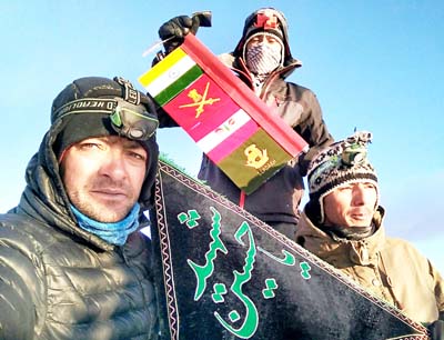 The youths among them Sajjad Hussain from Thasgam Drass, Maznoor Hussain from Drass, Mustafa Hussain from Gongma Kargil have conquered the peak in 9 days. After reaching in the peak they flared national flag, flag of their regiment and the flag of Hazrat Imam Hussain, grandson of the Prophet Muhammad.