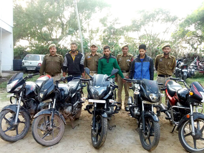 During checking, police arrested three bike lifters and recovered 5 stolen motorcycles worth Rs 3,80,000 from their possession.