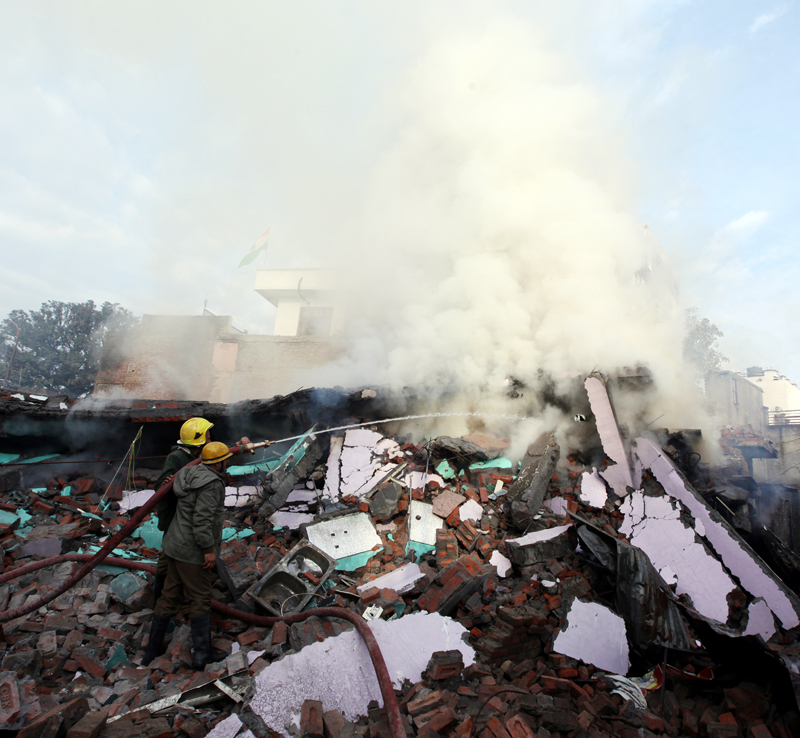 Director General of Fire and Emergency Services, VK Singh said the Fire Department rushed fire fighters after receiving a distress call at 4.48 AM and were making efforts to put out the blaze when suddenly the building collapsed at 5.30 AM.