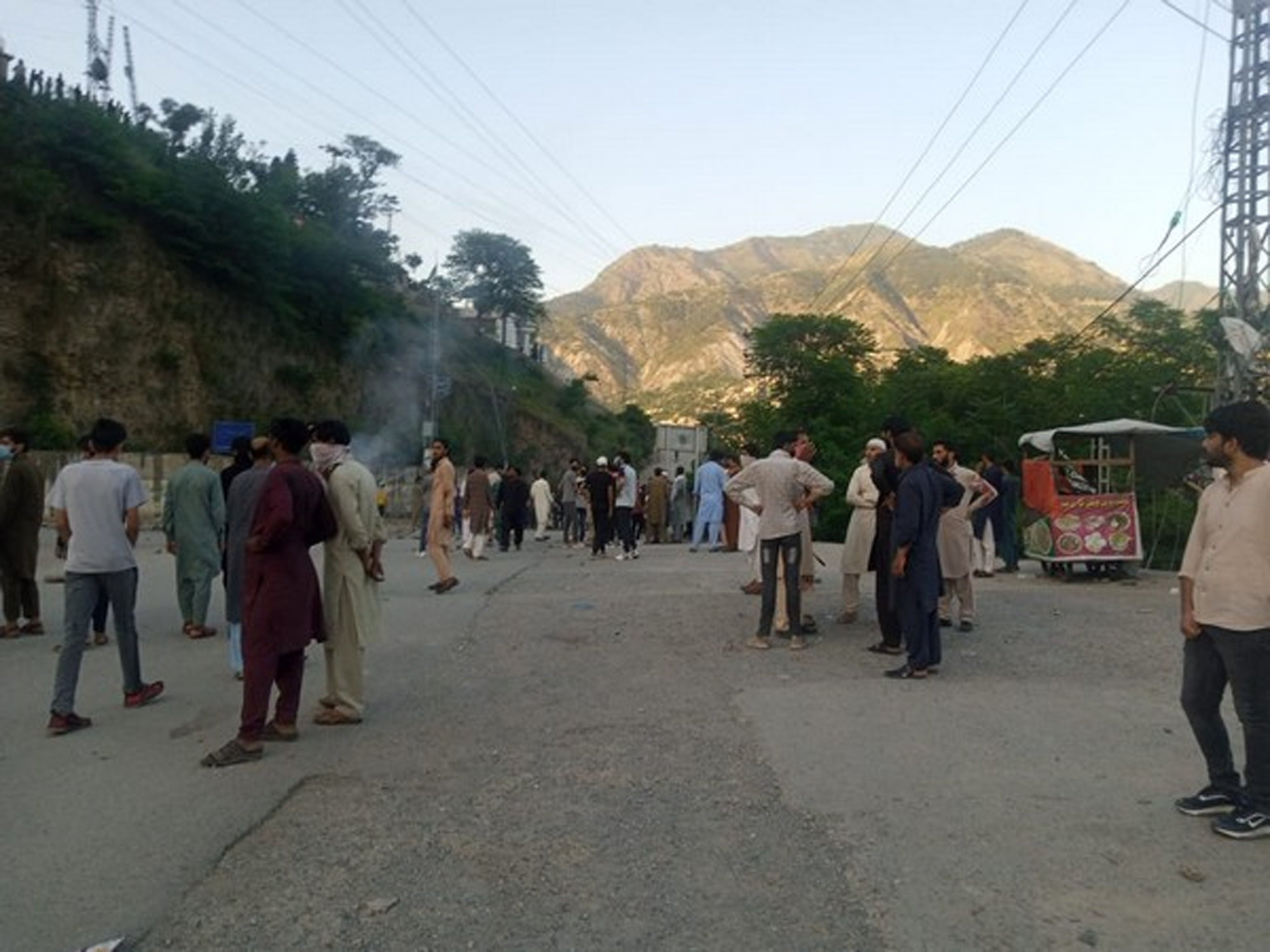 A social media clip verified by Dawn showed three Rangers vehicles ablaze on the Muzaffarabad-Brarkot road.