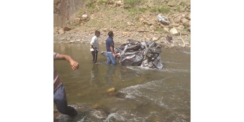 The ill-fated car bearing registration number JK19-6674 was on its way to Thathri from Gool area of district Ramban, when the driver lost control over the vehicle and it rolled down into Raggi nallah on Batote-Doda-Kishtwar highway this morning.