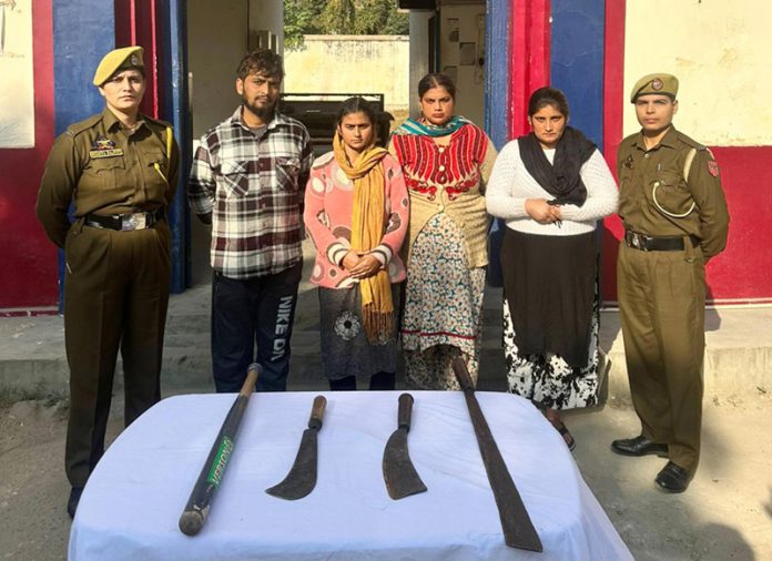 A police official said that Parveen Kumar alias Pinna, Rekha Kumar alias Kajal, Jyoti Bala alias Ramta and Rashmi Langeh, all residents of village Chorli, Bishnah, were apprehended with the consignment and weapons while they were targeting innocent youth in Bishnah.