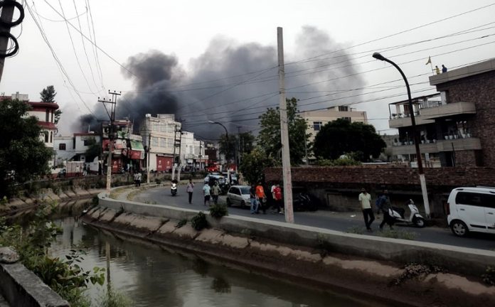 Efforts to extinguish the fire are currently underway with fire tenders deployed to the scene, though challenges persist in fully containing the blaze.