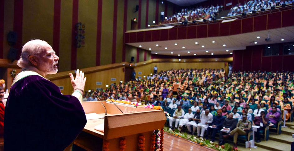 The Prime Minister, Shri Narendra Modi delivering the Convocation Address at the 5th Convocation of Shri Mata Vaishno Devi University, at Katra, in Jammu …Excelsior\Photo