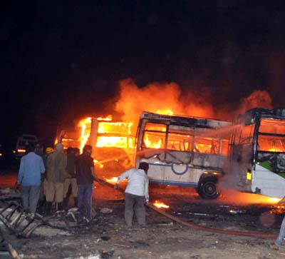 After hectic efforts, the fire was brought under control, but till then the buses were gutted.